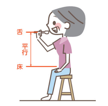 - 舌を前に出したときに、舌と床が平行になるようにする。