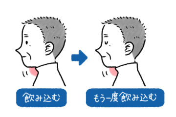 →1回ごっくんと飲み込んでもまだ残っている可能性がある場合は、少し経ってからもう一度飲み込んでもらいます。(追加嚥下)