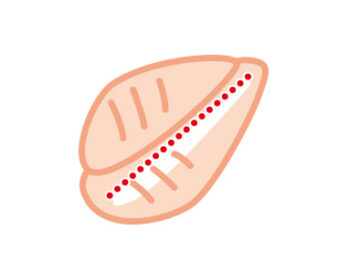 筋は赤身と脂身の間にあります。 鶏ささみ肉は、真ん中の白いものが筋です。