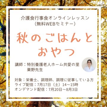 栗野先生考案!マルハニチロの介護食を使用した行事食レシピ(学会分類コード3~4相当)を実演を交えながらご紹介いたします♪