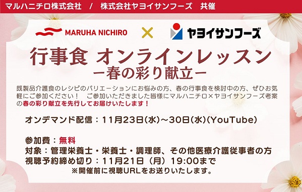 マルハニチロとヤヨイサンフーズの介護食品を使用した行事食レシピを、