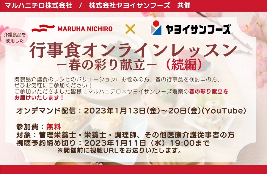 2022年11月末に開催いたしました「行事食オンラインレッスンー春の彩り献立ー」ではご案内