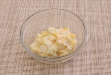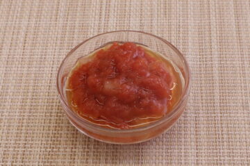 トマトは解凍してフォークなどでつぶし、じゃがいもはみじん切りにします。