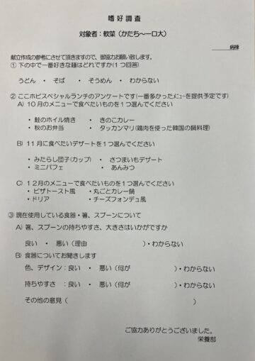 当院では、年に4回嗜好調査として患者様に直接お食事について伺う機会があります。