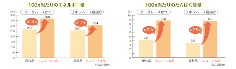 肉の配合量を増やし、エネルギーとたんぱく質をUPしています!