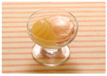2.SFさくら餅風デザート45を自然解凍し、器に盛りつけ、1を添える。