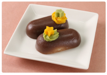3.SFおはぎ風ムース35(こしあん)は冷凍のままトレーから取り出し、自然解凍して2を絞り、1を添える。