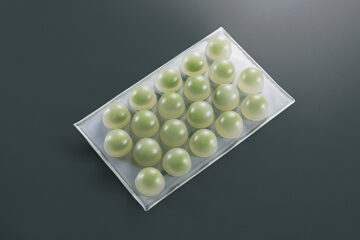 若草色のあんを半透明の葛まんじゅうで包み、宇治の抹茶を使用し抹茶味に仕上げました。