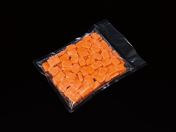 介護食品のやさしい素材『ミニとけないにんじん』はにんじんの素材感をいかしたユニバーサルデザインフード舌でつぶせるかたさのゼリーです。加熱調理してもとけません。