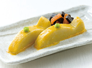 介護食品の『やさしい素材』はユニバーサルデザインフード舌でつぶせるかたさの介護食品です。