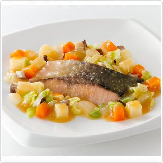 New素材deソフト ピンクサーモンを使用した介護食レシピをご紹介いたします。