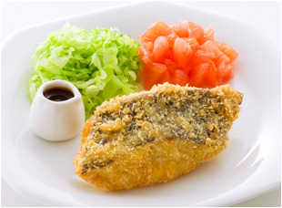 - 小麦粉、卵、パン粉の順に衣付けする。