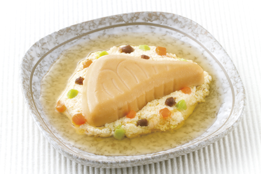 介護食品の『やさしい素材』はユニバーサルデザインフード舌でつぶせるかたさの介護食品です。