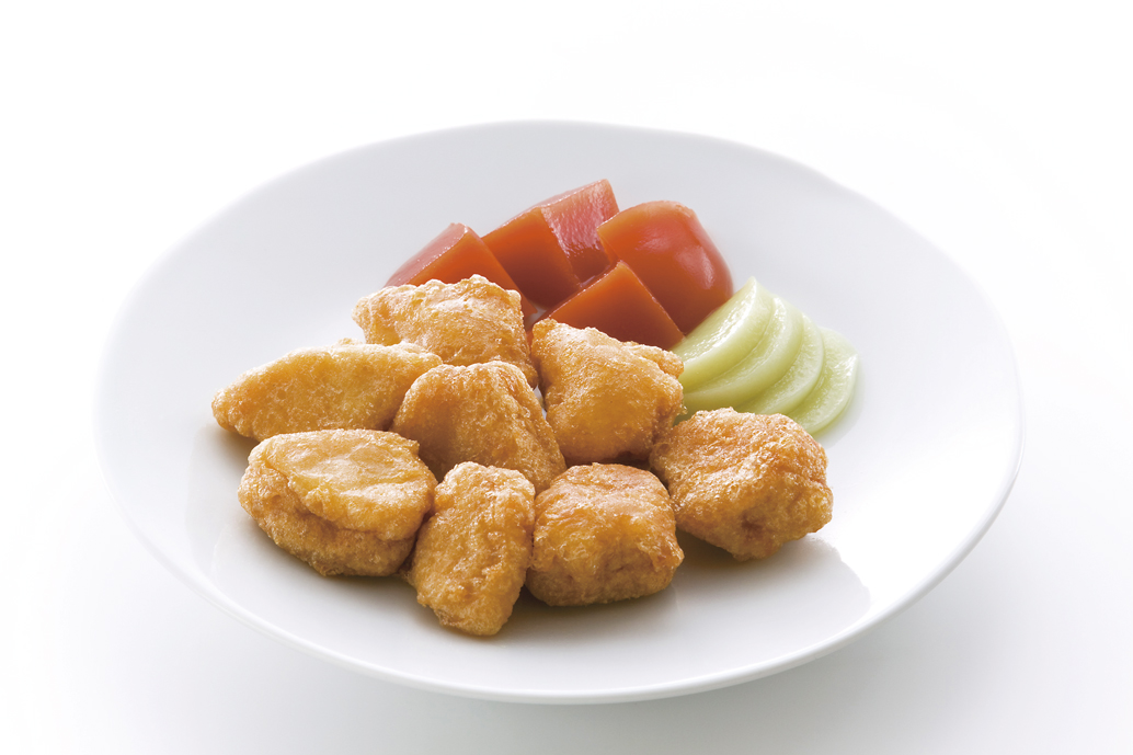 介護食品の『やさしい素材』はユニバーサルデザインフード舌でつぶせるかたさの介護食品です。