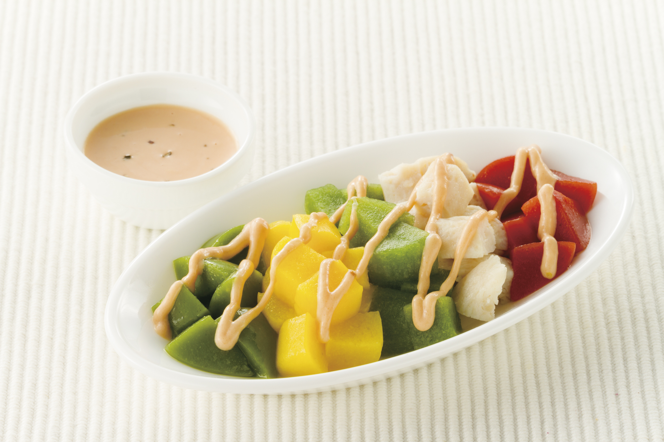 介護食品の『やさしい素材』はユニバーサルデザインフード舌でつぶせるかたさの介護食品です。