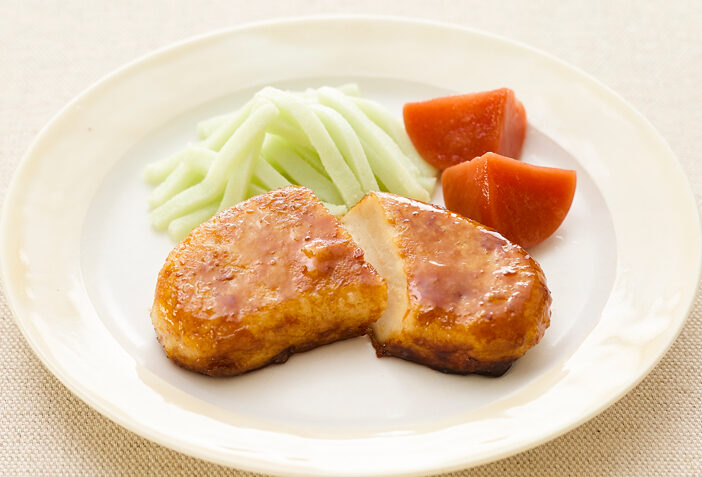 介護食品の『やさしい素材』はユニバーサルデザインフード舌でつぶせるかたさの介護食品です。