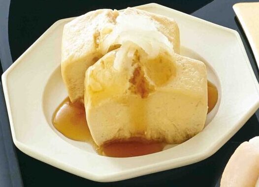 - 残りの汁にとろみ調整食品でとろみをつけ、しょうがのしぼり汁を加え3にかける。
