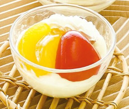 - パン粥(MCT入り)を加熱し、器に盛り付け冷やし固める。