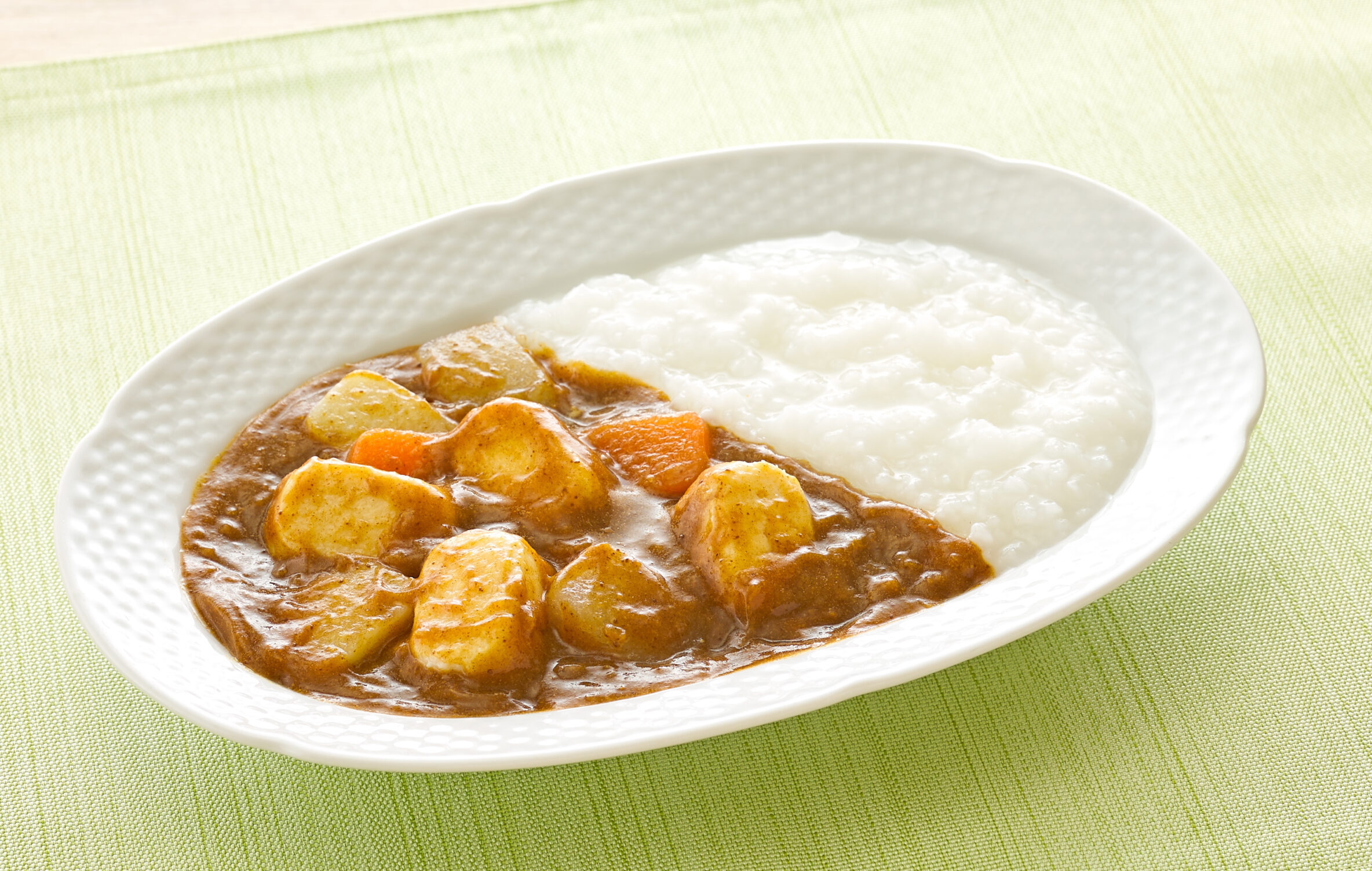 介護食品の『やさしい素材』はユニバーサルデザインフード舌でつぶせるかたさの介護食品です。