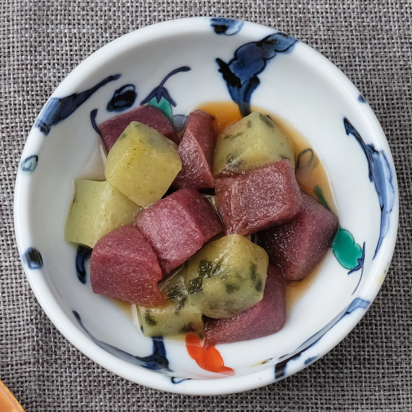 やたら漬け 使用食材(1人前) やさしいおかず(きゅうりの酢の物ゼリー) - 15g やさしい素材(とけないなす) - 15g しそドレッシング - 8g とろみ調整食品 - 1.5g 作り方 きゅうりの酢の物ゼリー、なすは半解凍状態で、食べやすい大きさにカットする。 しそドレッシングにとろみ調整食品を加えとろみをつけ、1にかけて和える。 器に2を盛り完成。 一覧へ戻る